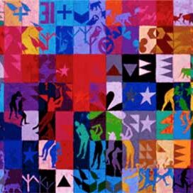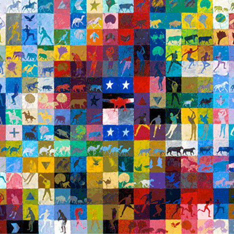 Habitat Pixel Series Gallery 3 Queen Menagerie 44 x 90 inches, oil on canvas sold