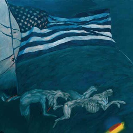 Human Farm Series Do Not Pass This Point 24 x 66 inches, oil on canvas