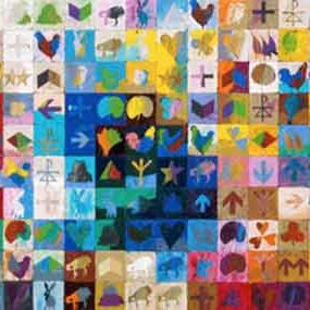 Testament Papers Series Sa Na Nu To Ho Na Noka 56 x 56 inches, oil on canvas, sold