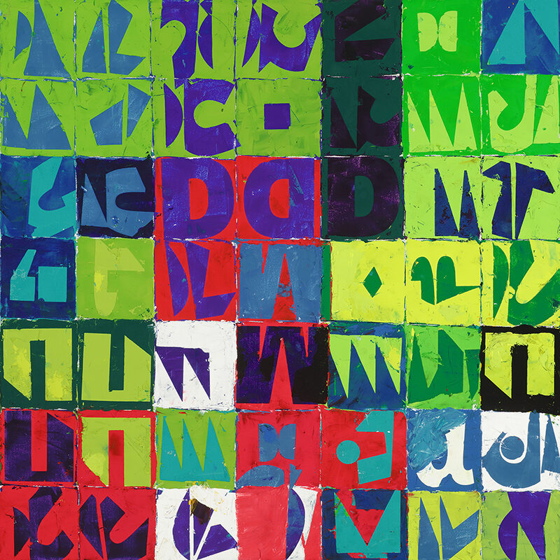 Celebration Series Alphabetica Neurosa 48 x 48 acrylic oil on canvas